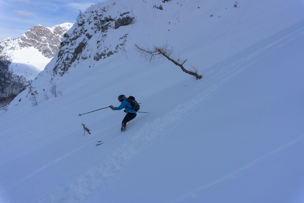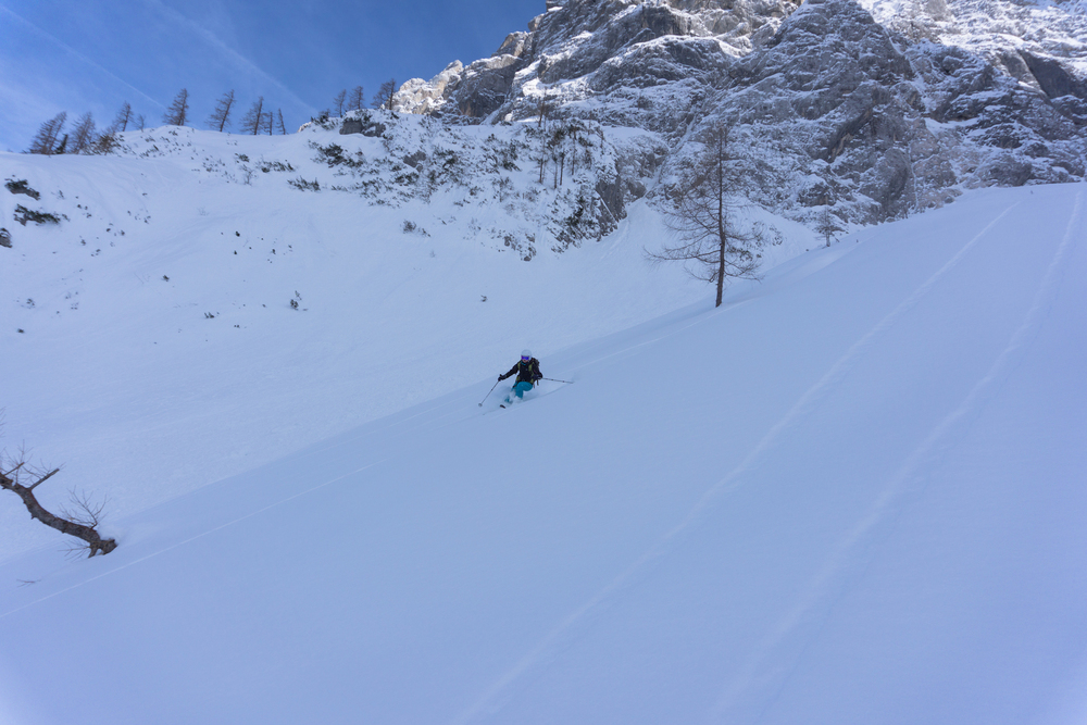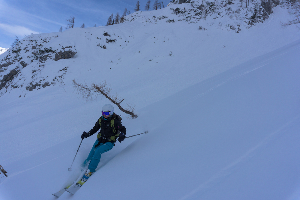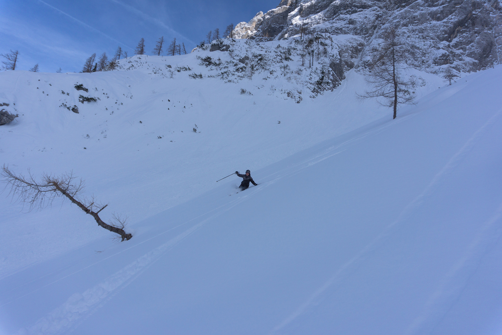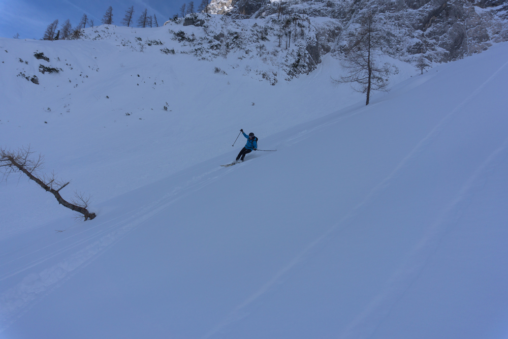Vijuganje navzdol po mehkem pršiču je bilo najboljše letos in prehitro smo bili spet pri koči. Dan je bil super, vseh sedem udeležencev pa odločenih, da se prav kmalu spet vrnemo.
