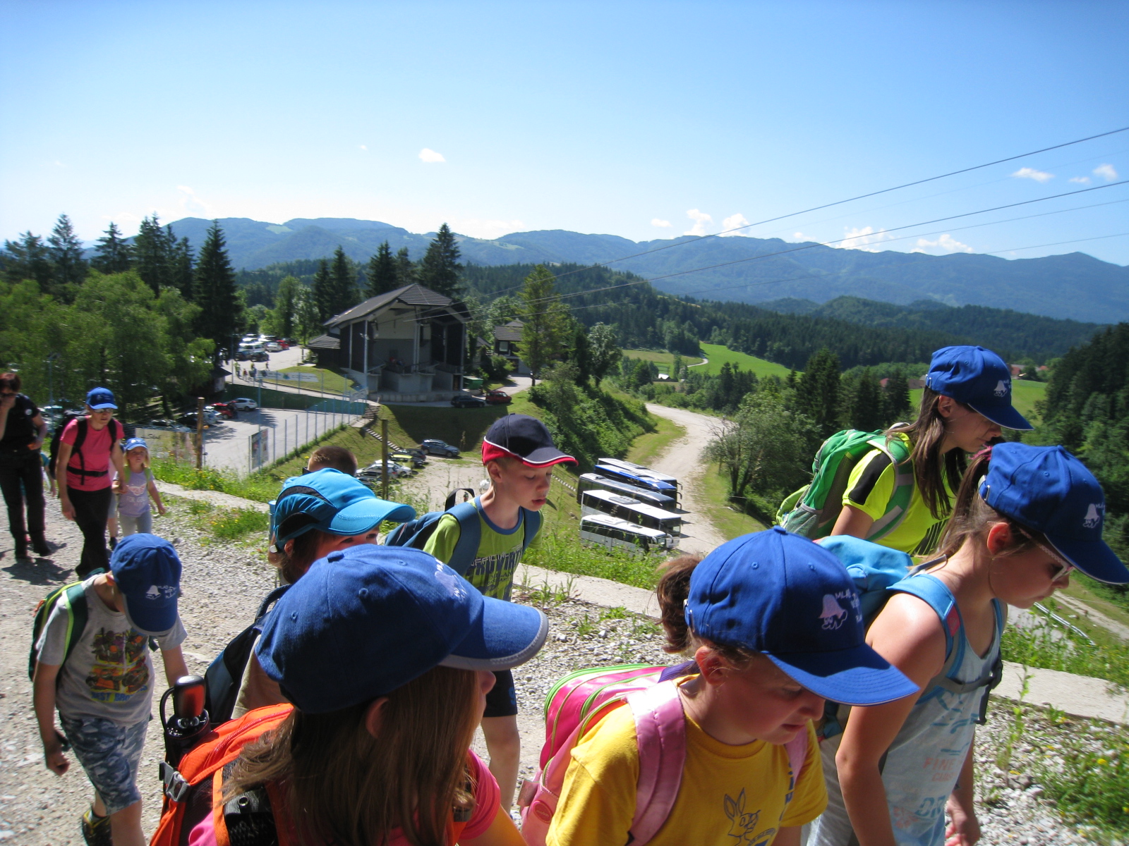Planinska pot nas je vodila iz vasi Žekovec skozi gozd, čez travnik, mimo vikendov in nas je po dobrih dveh urah hoje pripeljala do koče na Golteh. Tu smo si požigosali dnevnike in si ogledali del prireditve. Ker pa nas je že čakal avtobus, smo pohiteli na nihalko, s katero smo se vrnili v dolino.